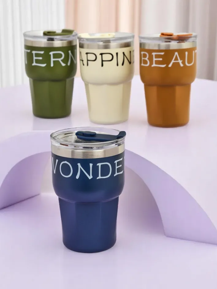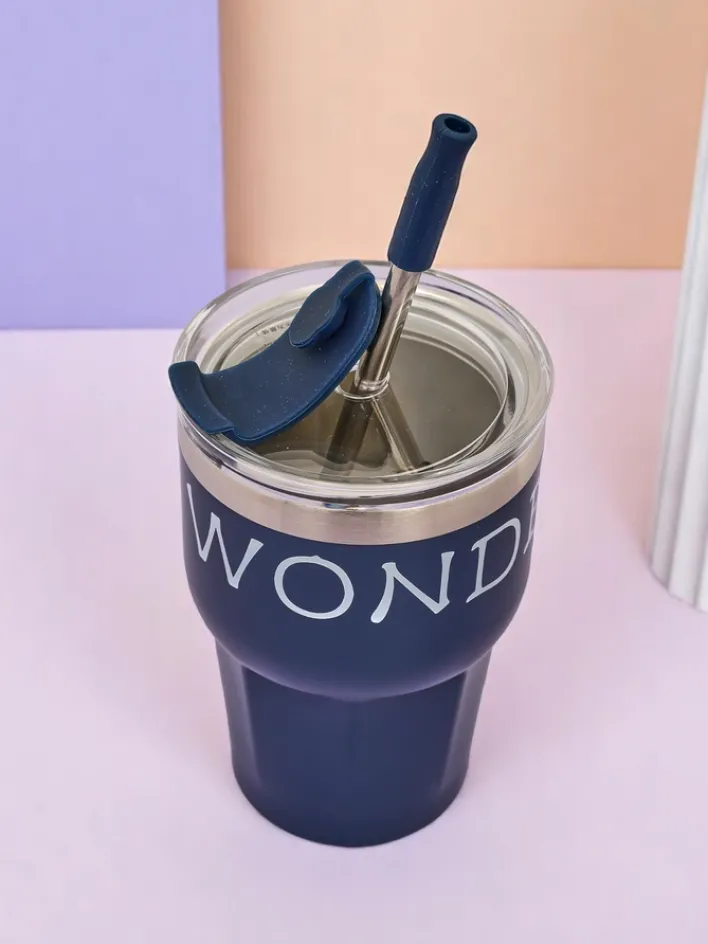 Akcesoria^Royalfashion Kubek termiczny ze słomką Beautiful Granatowy