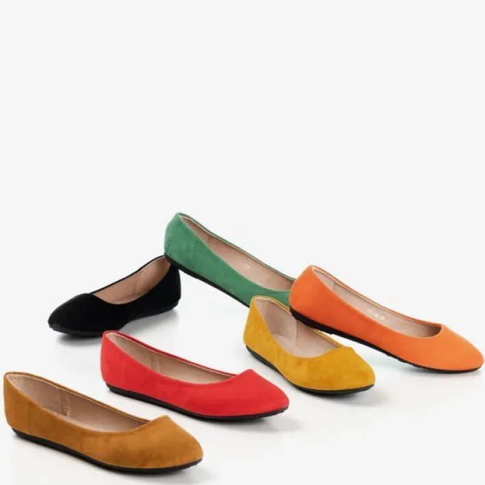 - Klasyczne balerinki damskie wykonane z zamszu ekologicznego. W środku posiadają miękkie poduszeczki pod stopami, które zapewniają niezwykły komfort podczas użytkowania. Wygodne obuwie na co dzień.