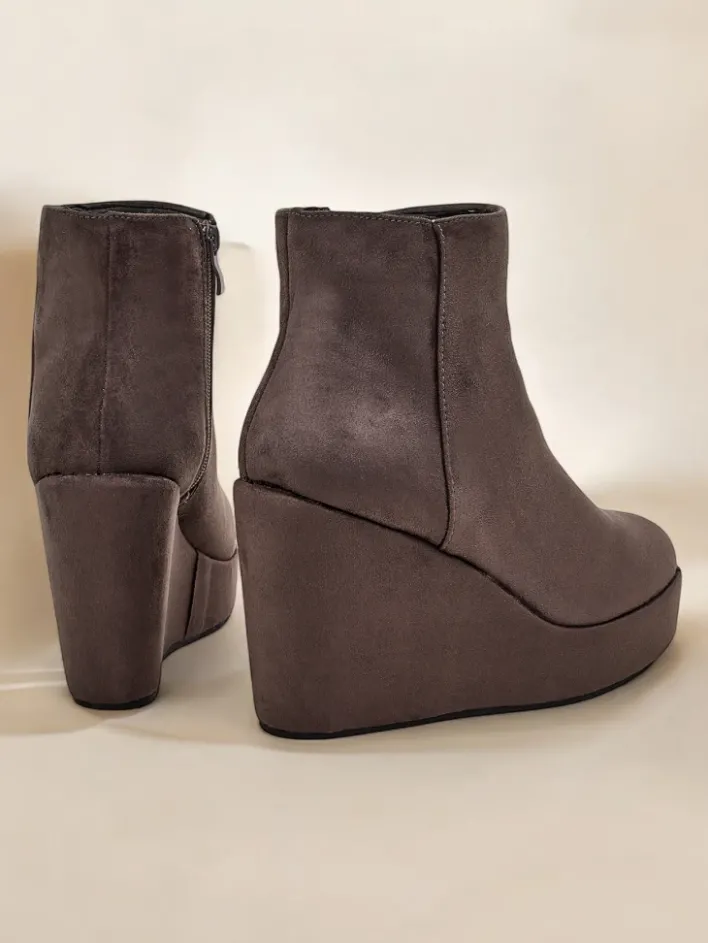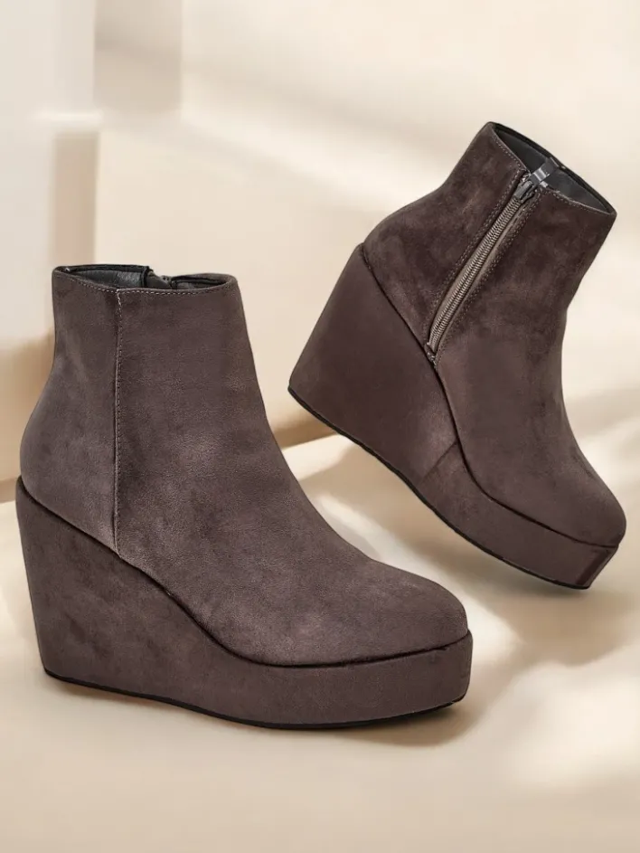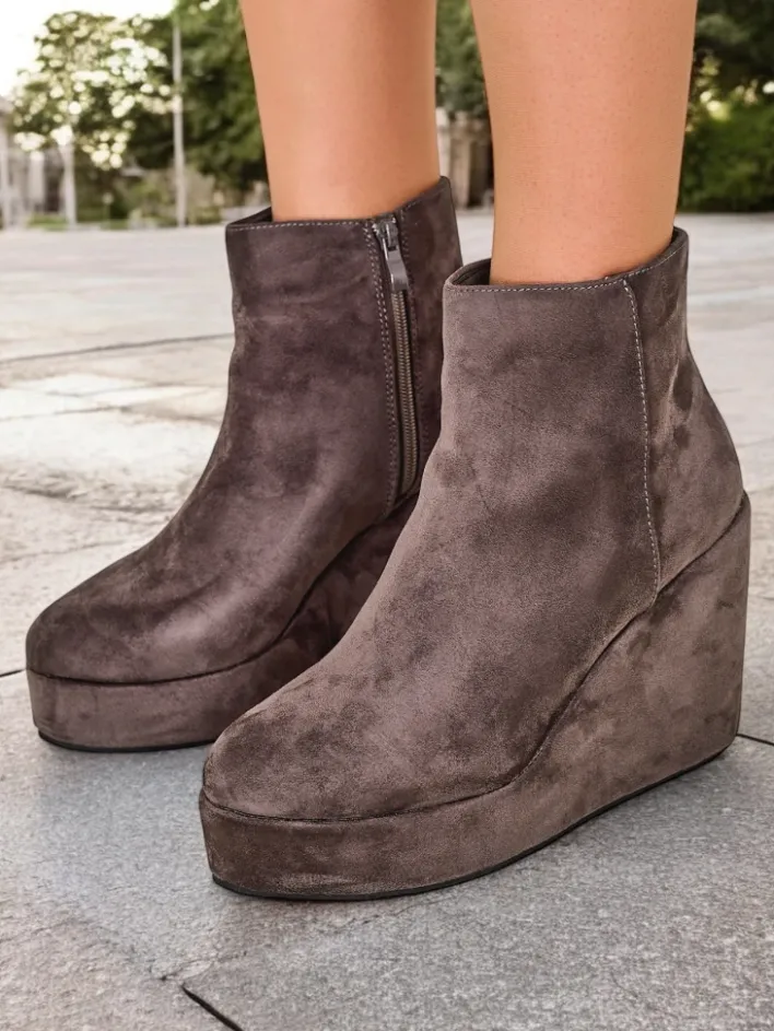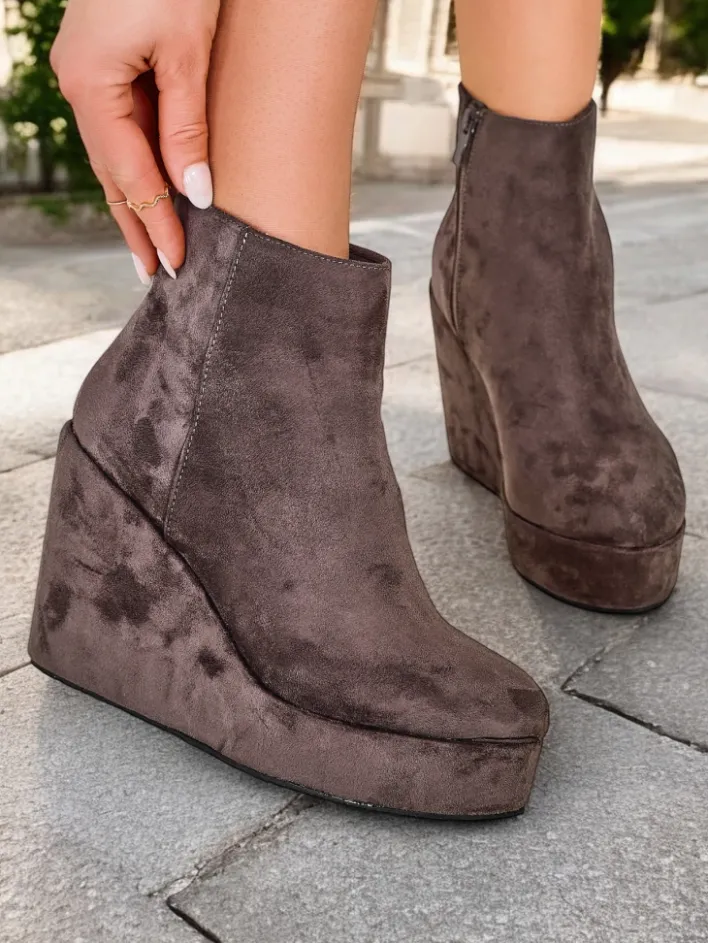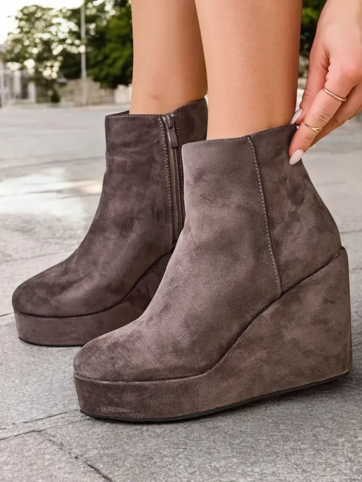 Botki Z Delikatnym Ociepleniem|Botki Na Koturnie^Royalfashion Botki damskie na koturnie Sieffa gołębi szary