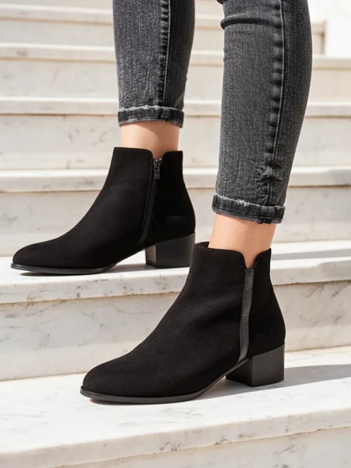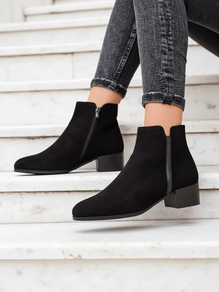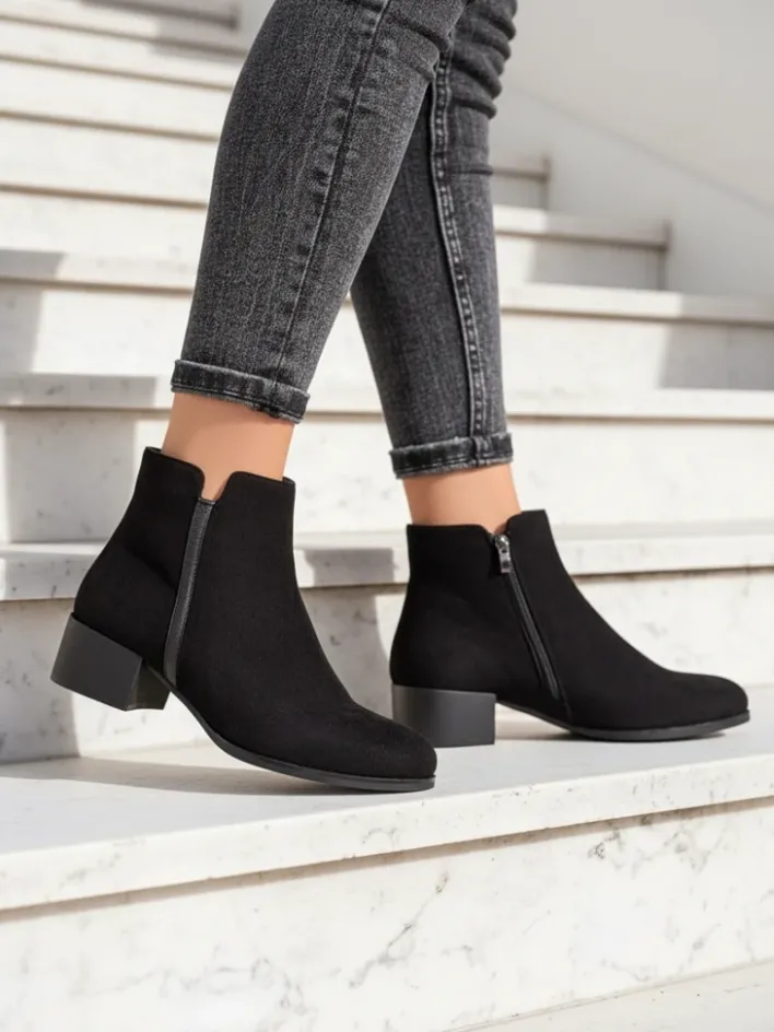 Botki Z Delikatnym Ociepleniem|Botki Na Płaskim Obcasie^Royalfashion Botki Amicus Nero Elegante na Jesień i Zimę