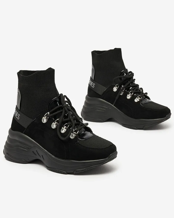 - Damskie ocieplane buty sportowe typu sneakersy na grubszej podeszwie. Sznurowana cholewka wykonana z połączenia skóry ekologicznej zamszowej, lakierowanej i tkaniny. W środku miękkie futerko. Super dodatek do Twoich zimowych outfitów w stylu casual!