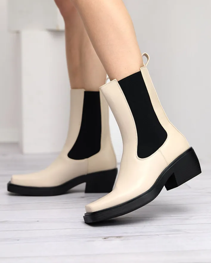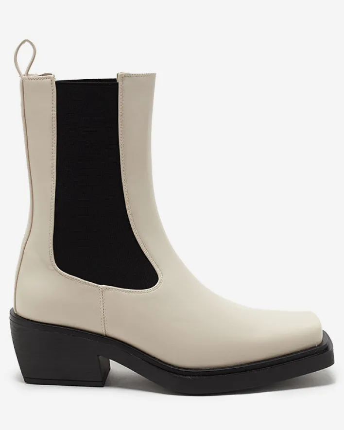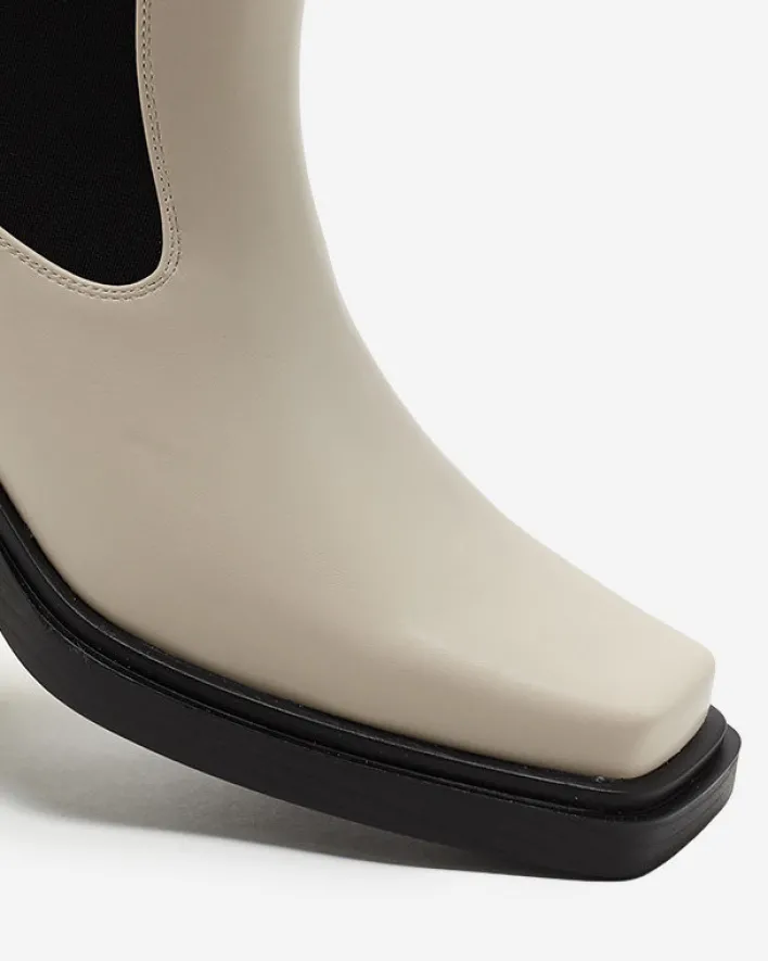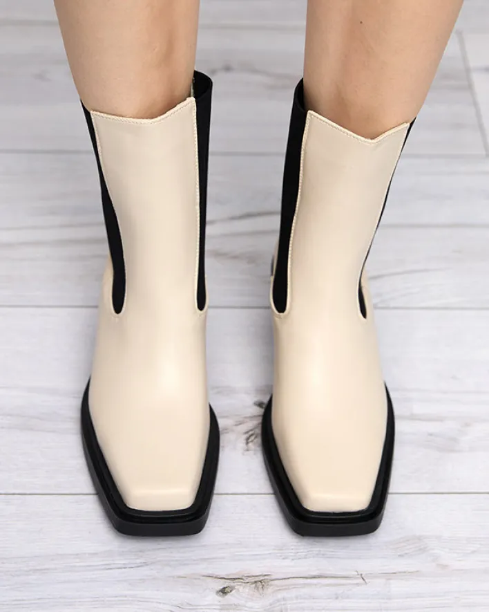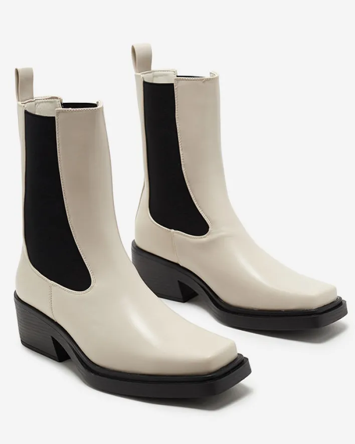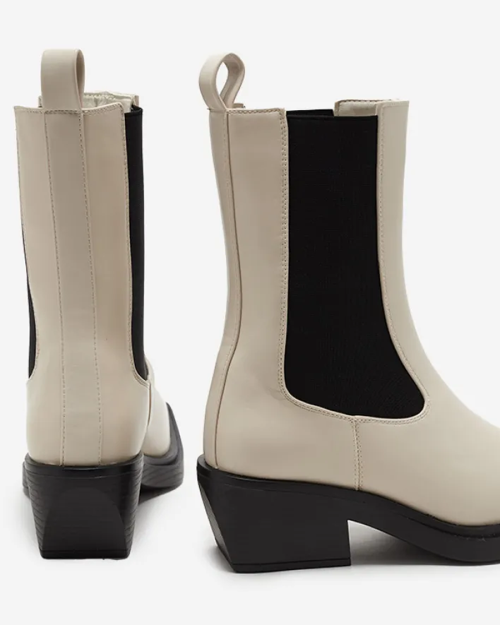 - Wysokie wsuwane damskie botki na niskim słupku wykonane z eko-skóry. Model posiada elastyczne wstawki po bokach oraz kwadratowy nosek. Buty są delikatnie ocieplane. CZARNE OCIEPLANE BOTKI DARRAN