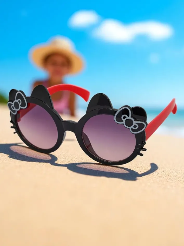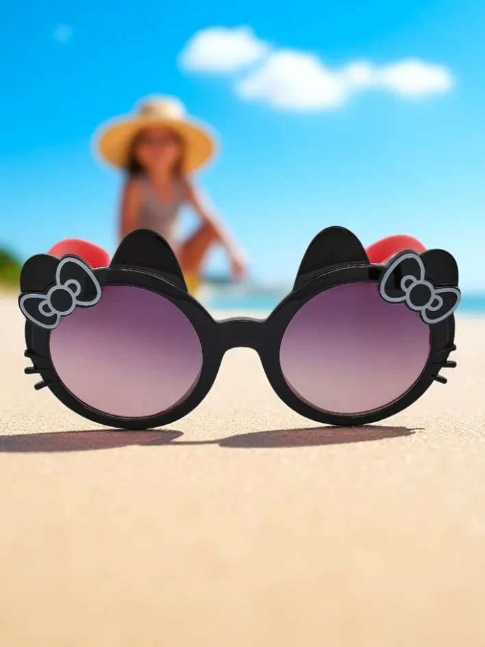 - Urocze okulary przeciwsłoneczne Kitty Shades w stylu Hello Kitty to idealny wybór dla małych fanek stylu kawaii! Z kokardką i kocimi uszkami, zapewniają ochronę UV i bajkowy wygląd na każdy słoneczny dzień.