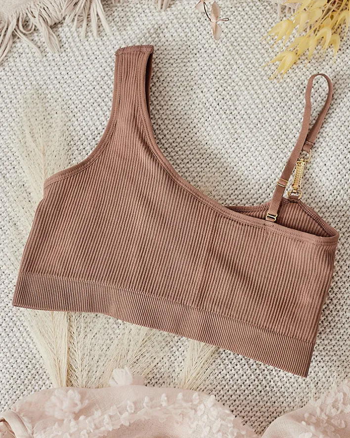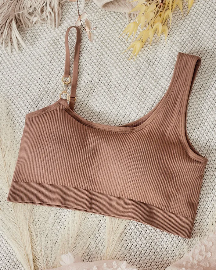 - Klasyczny damski biustonosz wykonany z elastycznego, przyjemnego materiału. Model z ozdobnym ramiączkiem i z wyjmowanymi wkładkami, wykończony na dole gumą. Idealnie dopasuje się do ciała.
