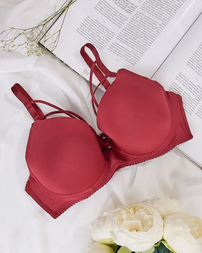 - Wyjątkowy damski biustonosz z ozdobnymi paseczkami. Produkt jest zapinany z tyłu na dwustopniowe zapięcie na haftki. Ramiączka są odpinane i posiadają regulację długości. UWAGA: Dokładność pomiaru (+/-) 1 cm.
