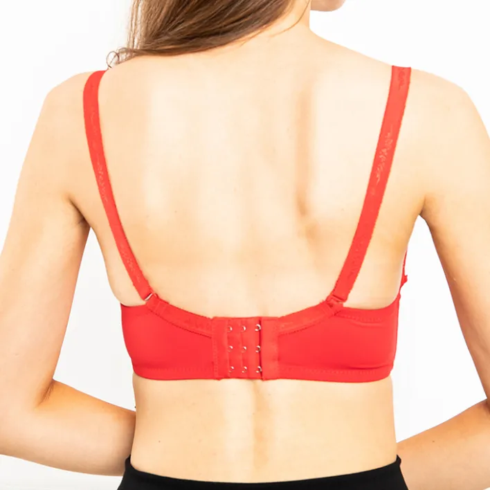 - Śliczny damski usztywniany biustonosz koronkowy. Model zapinany z tyłu, posiada regulowane i odpinane ramiączka.