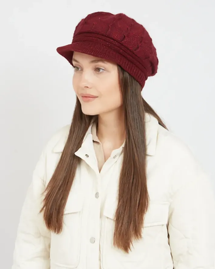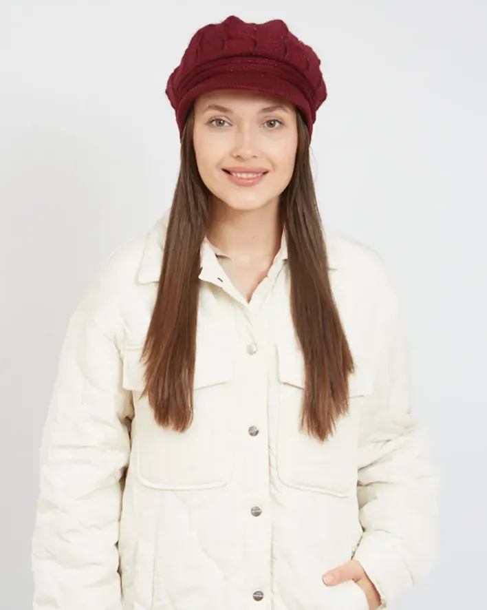 - Piękny beret damski z daszkiem wykonany z przyjemnego w dotyku materiału z dodatkiem brokatowej nici. Ocieplany delikatnym futerkiem. Klasyczny model, który idealnie dopełni jesienne stylizacje!