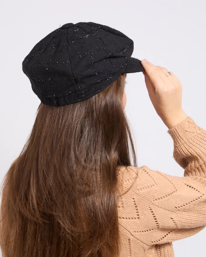 - Piękny beret damski z daszkiem wykonany z przyjemnego w dotyku materiału z dodatkiem brokatowej nici. Klasyczny model, który idealnie dopełni jesienne stylizacje!