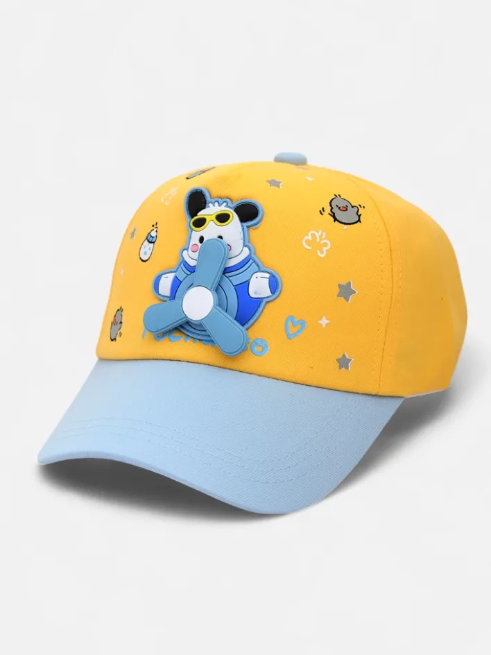 Czapki^Royalfashion Dziecięca czapka z daszkiem i naszywką z latającym misiem Oliver Sky żółty