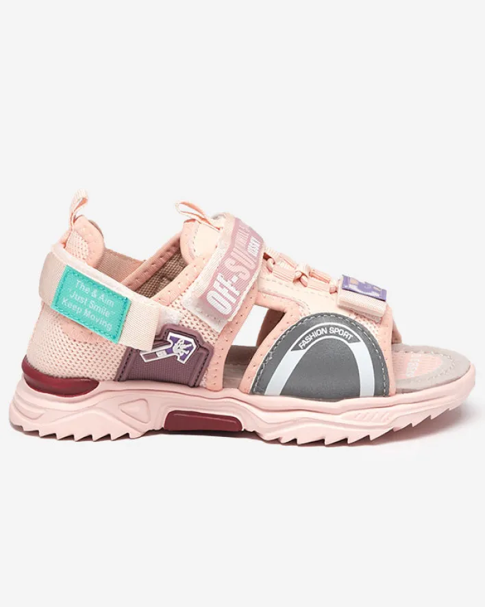 - Modne i wygodne sandały dziecięce na płaskiej podeszwie. Wykonane z połączenia tkaniny i eko-nubuku, zapinane na rzepy. Model z zakrytą piętą – świetne na wakacyjne dni!