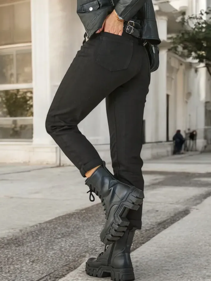 - Stylowe damskie spodnie typu mom jeans, wykonane z materiału bawełnianego. Model posiada wysoki stan, zapięcie na guzik i suwak, 4 kieszenie. Must have w każdej szafie!