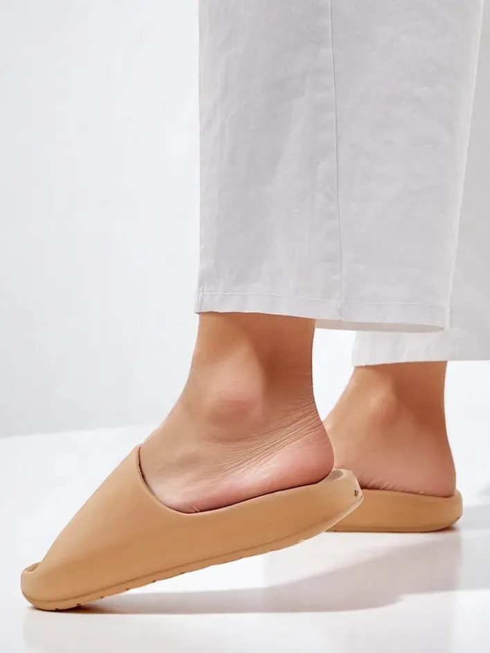 - Świetne damskie gumowe klapki na płaskiej podeszwie. Idealny wybór na wakacje!