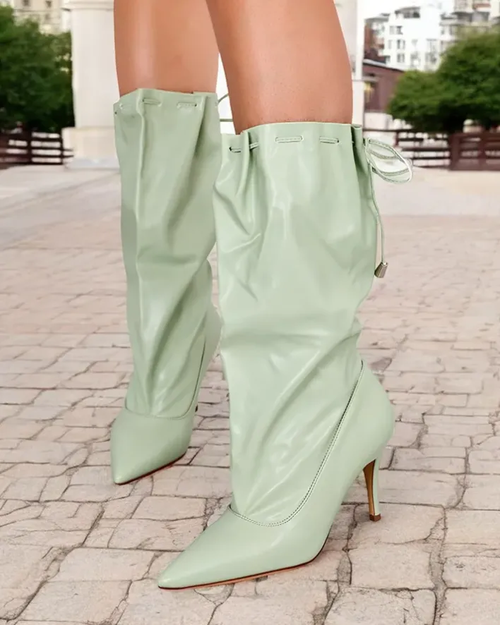 - Krótkie damskie kozaki na szpilce z noskiem w szpic. Wykonane ze skóry ekologicznej, w środku eko skórzana wkładka. Model wsuwany, posiada ściągacz na górze cholewki. Idealny wybór do jesiennych stylizacji!