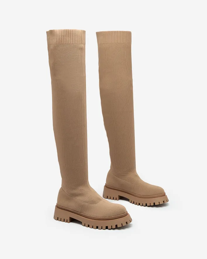 - Klasyczne damskie kozaki na grubszej podeszwie. Cholewka wykonana z elastycznej tkaniny. W środku eko skórzana wkładka. Model wsuwany. Idealna baza dla wielu codziennych looków!