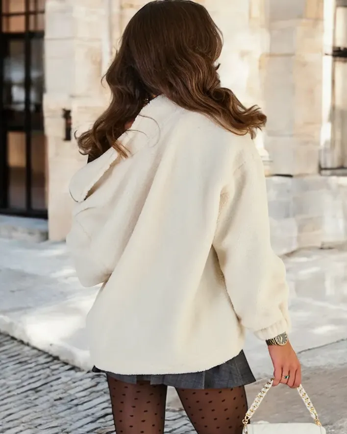 - Kurtka z materiału a’la kożuszek to idealne połączenie stylu i komfortu. Model bez kaptura z zapięciem na zamek. Długość do bioder, dwie praktyczne kieszenie. Z podszewką o kroju oversize!