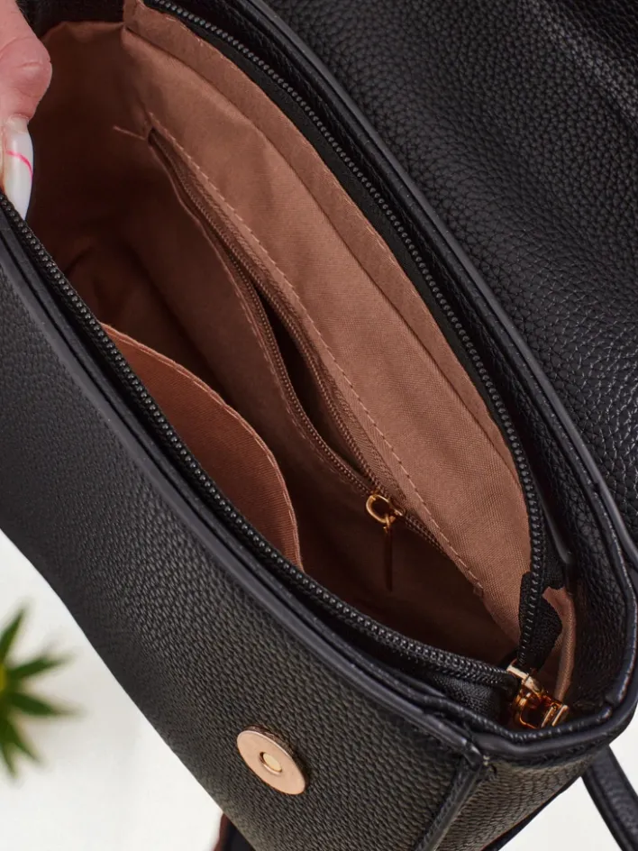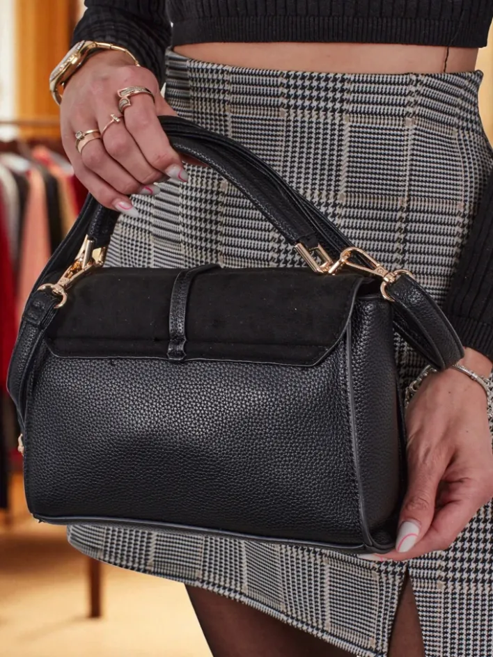 - Mała torebka z eko skóry i eko zamszowej wstawki. 1 komora, regulowany pasek zapewniają wygodę i styl. Idealna na wyjścia – kompaktowa forma, która przyciąga wzrok.
