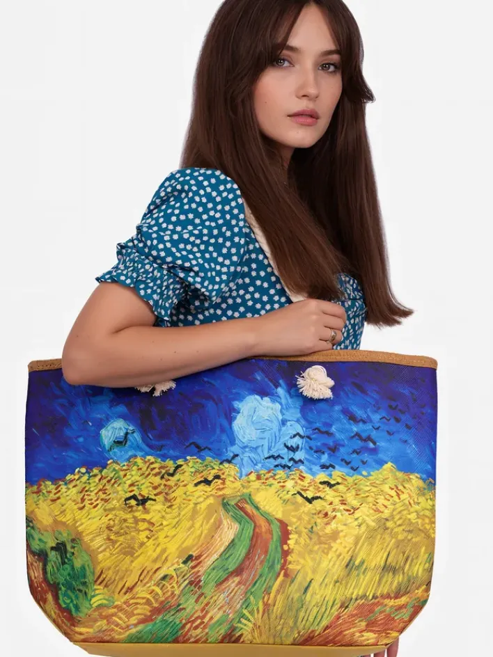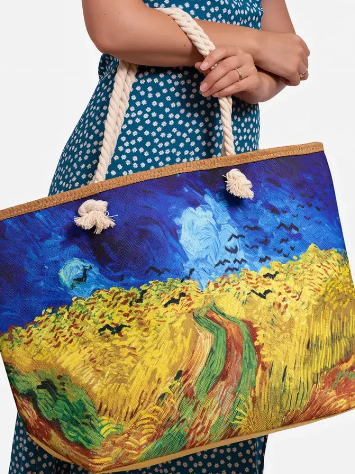 - Stylowa torba materiałowa wykończona printem. Torebka z dłuższymi rączkami, zapinana na zamek, w środku posiada 1 kieszonkę. Nada się świetnie na plażę!