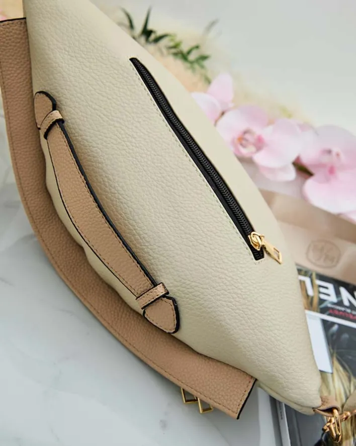- Mała damska torebka typu nerka zapinana na suwak, wykonana ze skóry ekologicznej. Model posiada 1 komorę i 2 kieszonki. Dodatkowo regulowany pasek. Idealna na co dzień jako torebka jak i nerka!