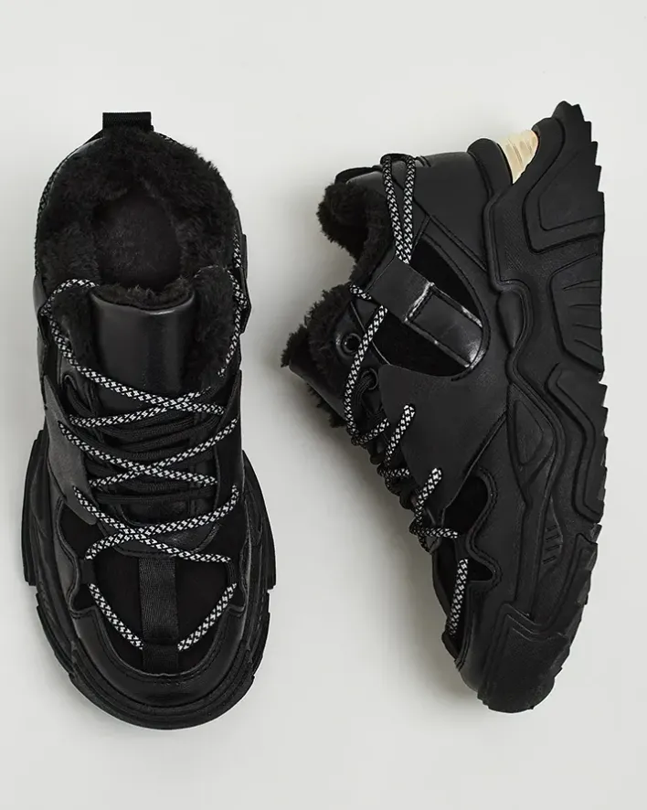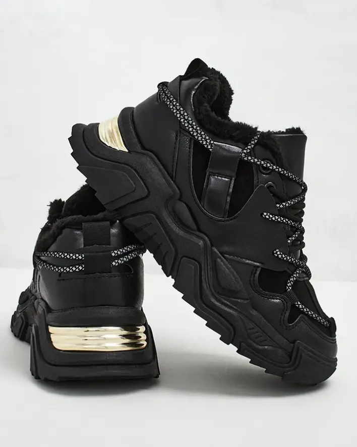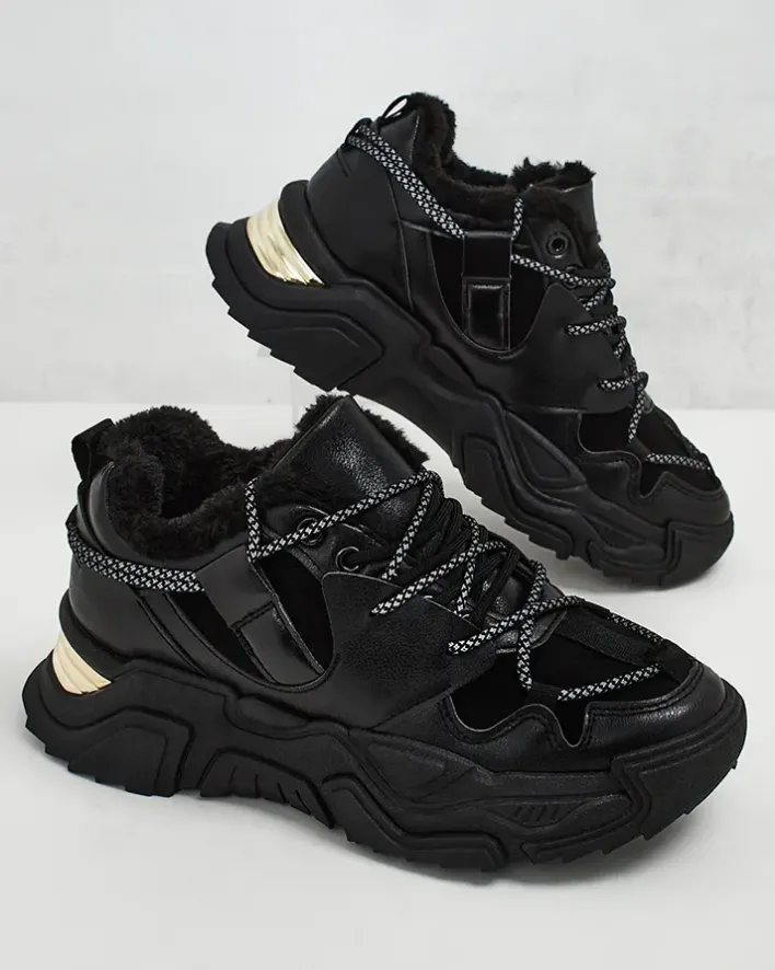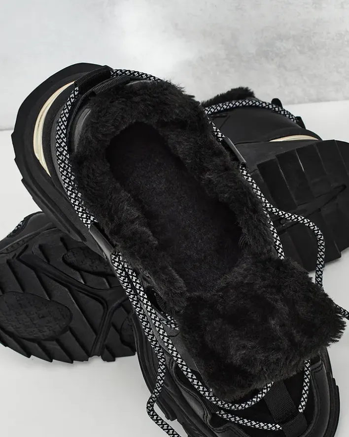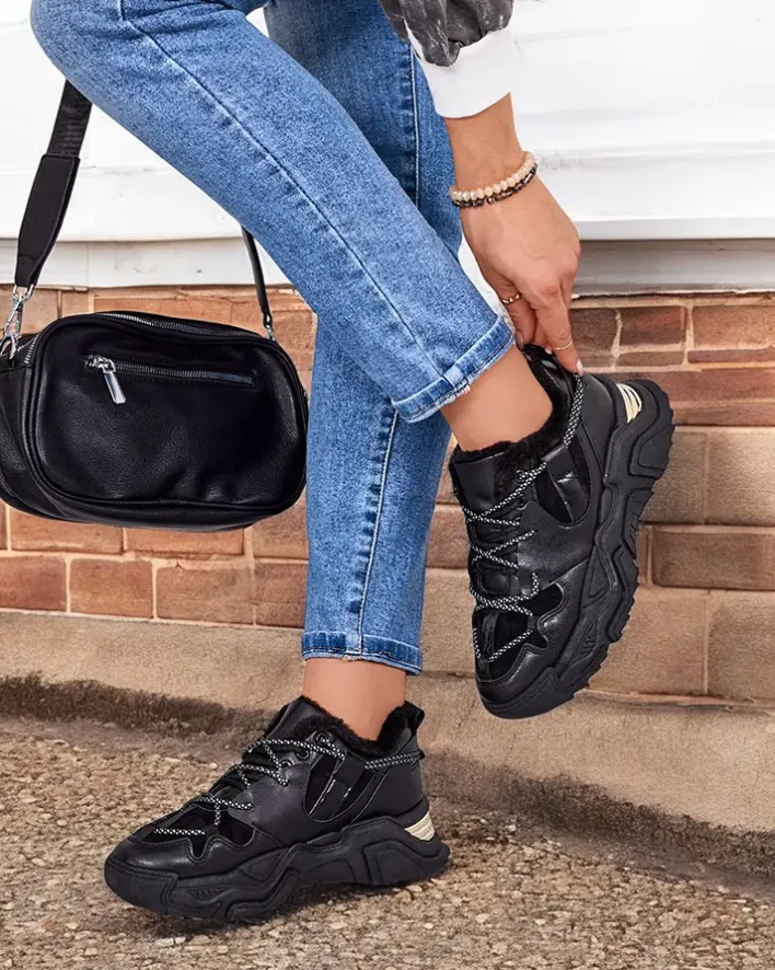 - Sportowe sneakersy damskie na grubszej podeszwie. Cholewka sznurowana, wykonana ze skóry ekologicznej. Wnętrze w całości ocieplone futerkiem. Idealne do sportowych outfitów!
