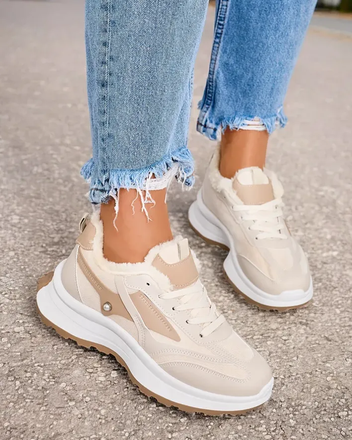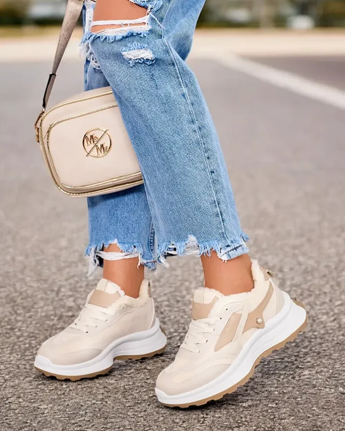 - Damskie ocieplane buty sportowe typu sneakersy na grubszej podeszwie. Sznurowana cholewka wykonana z zamszowej skóry ekologicznej z elementami eko skóry. W środku miękkie futerko. Super dodatek do Twoich zimowych outfitów w stylu casual!