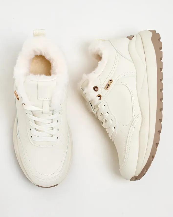 - Damskie ocieplane buty sportowe typu sneakersy na grubszej podeszwie. Sznurowana cholewka wykonana z eko skóry. W środku miękkie futerko. Super dodatek do Twoich zimowych outfitów w stylu casual!