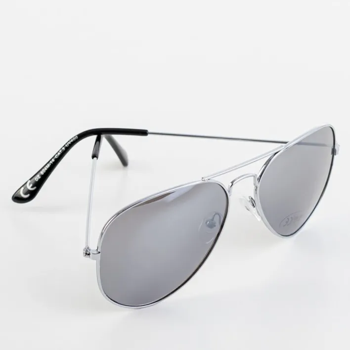 - Klasyczne damskie okulary przeciwsłoneczne z metalową oprawką ze srebrnym wykończeniem. Soczewki w czarnym odcieniu i z filtrem UV 400. Modny i elegancki dodatek podkreśli każdy outfit!