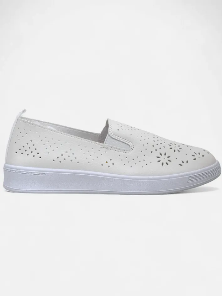 - Ażurowe damskie buty sportowe typu slip on, wykonane ze skóry ekologicznej. Środek wyłożony tkaniną. Idealny wybór na co dzień!