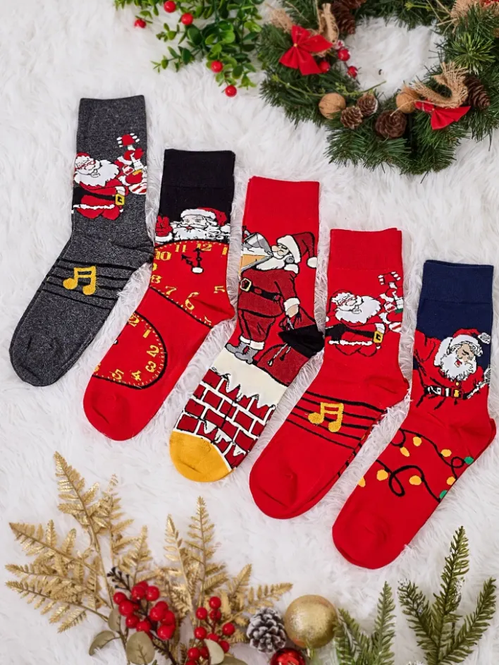 - Oryginalne męskie skarpety wykonane z elastycznej tkaniny bawełnianej wykończonej świątecznym wzorem. Ciepłe i wygodne – to doskonała propozycja na prezent!