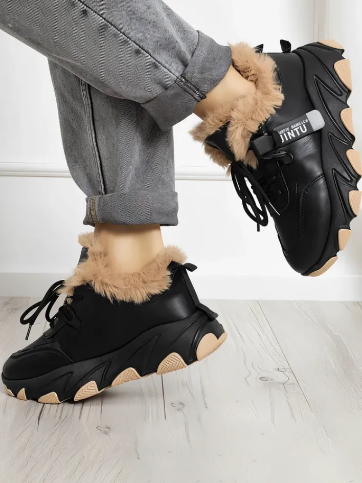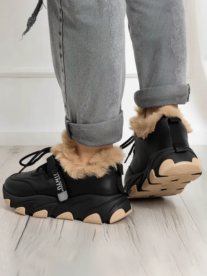 Śniegowce|Ocieplane^Royalfashion Czarne sportowe sneakersy damskie z futerkiem Nonua- Obuwie czarny
