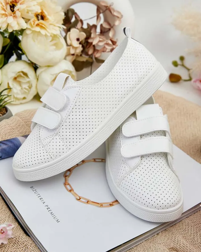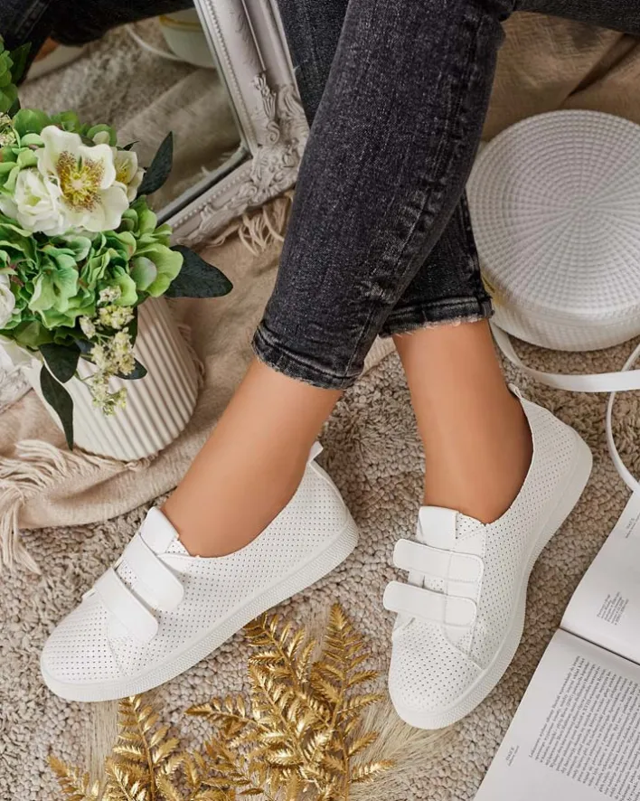 - Ażurowe damskie sportowe tenisówki wykonane ze skóry ekologicznej i tkaninowej wkładki. Model zapinany na rzepy, na płaskiej podeszwie. Będą świetnie pasowały do codziennych stylizacji!