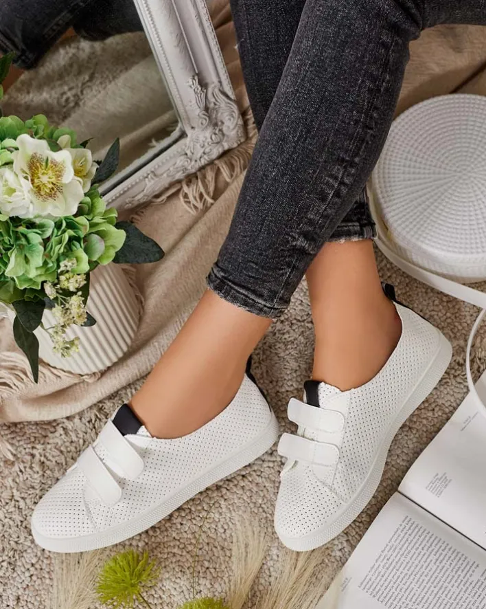 - Ażurowe damskie sportowe tenisówki wykonane ze skóry ekologicznej i tkaninowej wkładki. Model zapinany na rzepy, na płaskiej podeszwie. Będą świetnie pasowały do codziennych stylizacji!