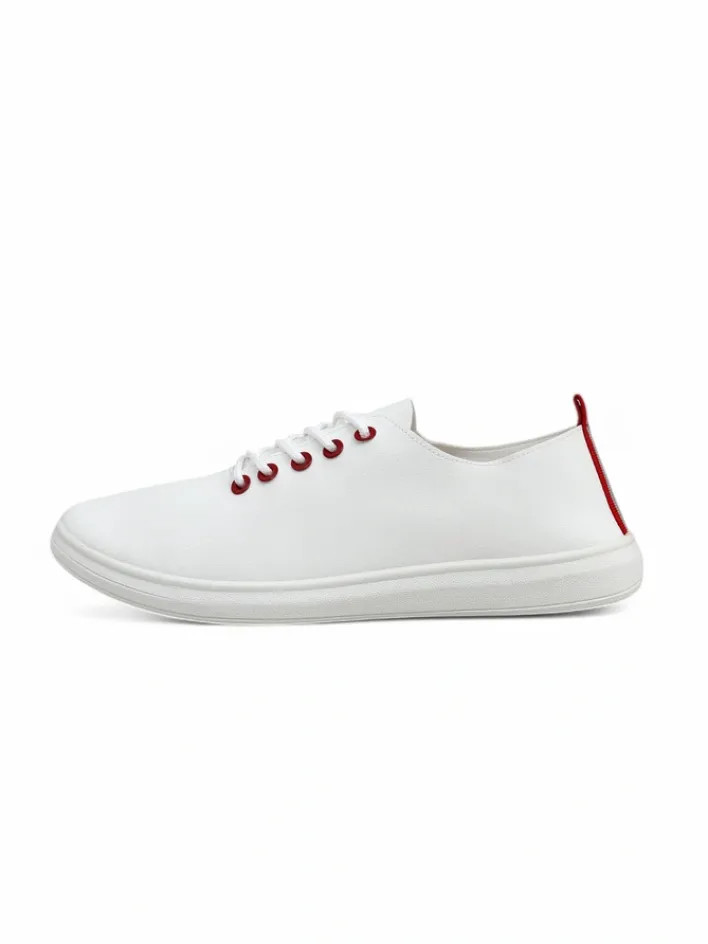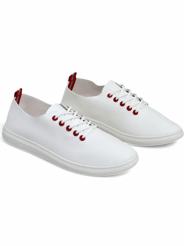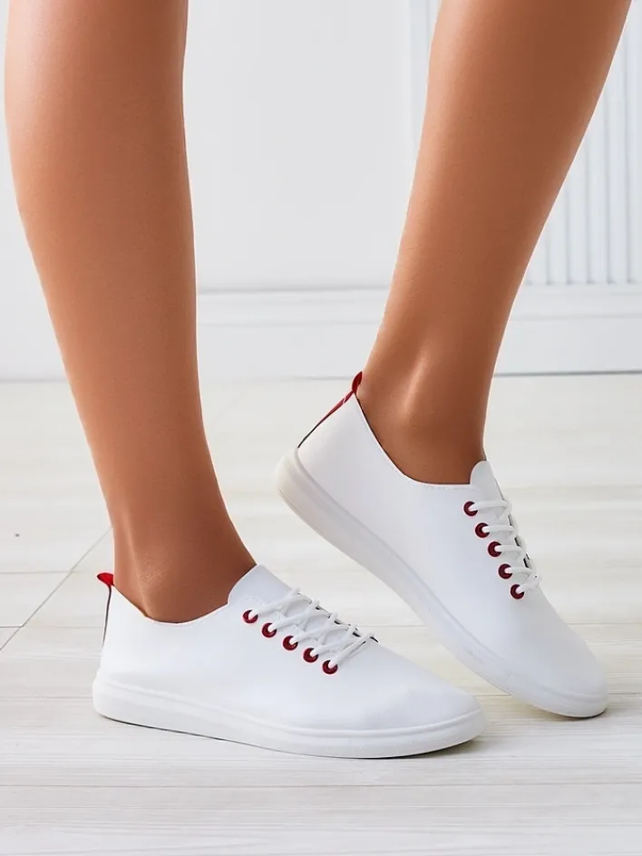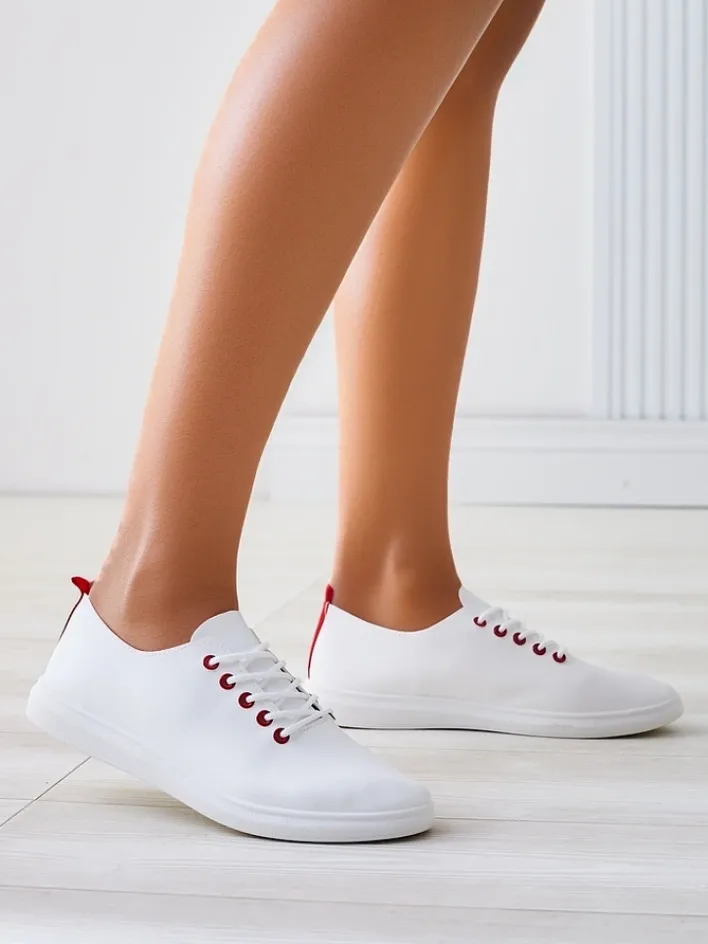 - Klasyczne trampki z eko skóry, wnętrze jest wyłożone tkaniną. Bardzo wygodne dzięki gumowej podeszwie. Obuwie pasuje do wielu codziennych stylizacji!