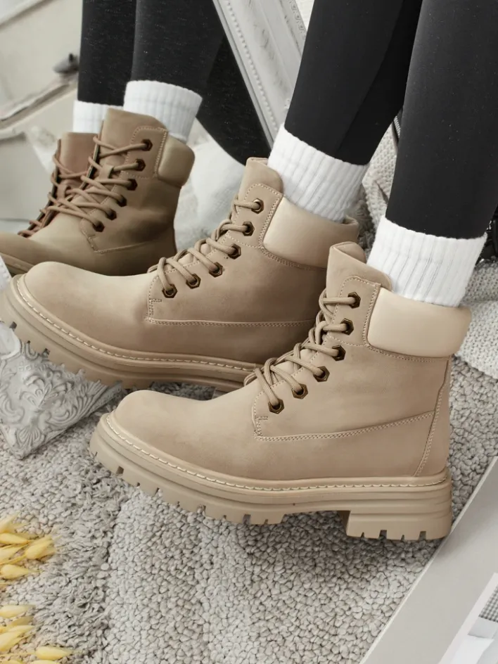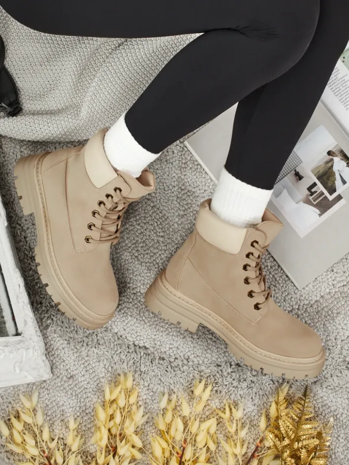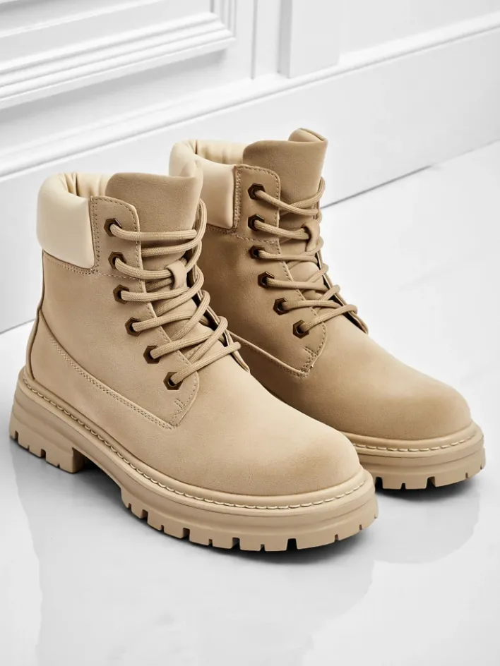 Trapery|Botki Bez Ocieplenia^Royalfashion Damskie botki trapery Avienne beżowy