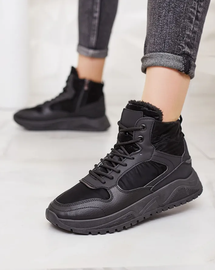 - Sportowe sneakersy damskie na grubszej podeszwie. Cholewka sznurowana, wykonana z połączenia eko skóry i śliskiej tkaniny. Wnętrze w całości ocieplone futerkiem. Idealne do sportowych outfitów!