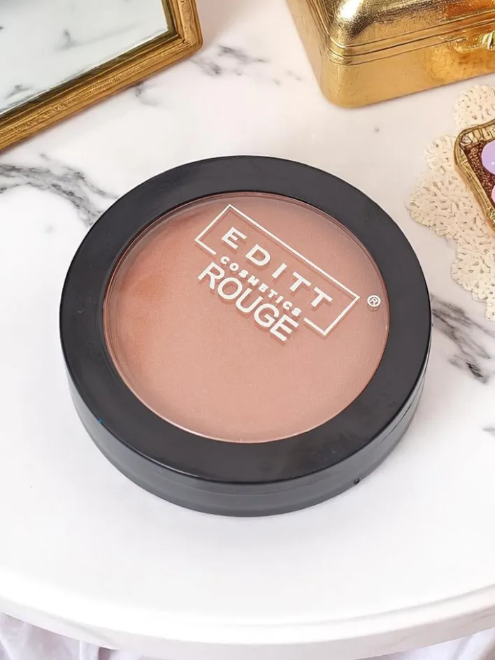 - Prasowany róż do policzków – zapewnia naturalny rumieniec i łatwe blendowanie. Delikatna formuła długo utrzymuje się na skórze, podkreślając świeżość i promienność cery.
