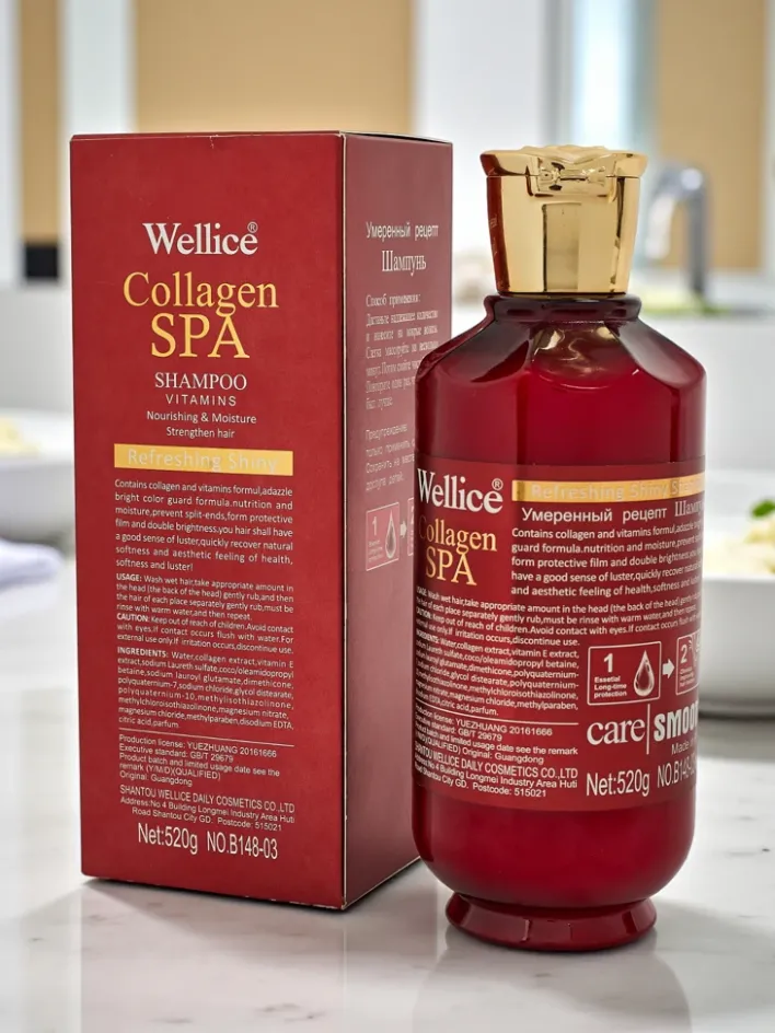 - Szampon z kolagenem intensywnie nawilża i wygładza włosy, przywracając im zdrowy wygląd i naturalny blask. Wzmacnia strukturę włosa, zapobiega puszeniu i ułatwia rozczesywanie. Idealny do codziennej pielęgnacji suchych i osłabionych włosów.