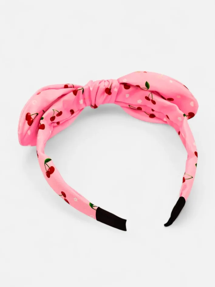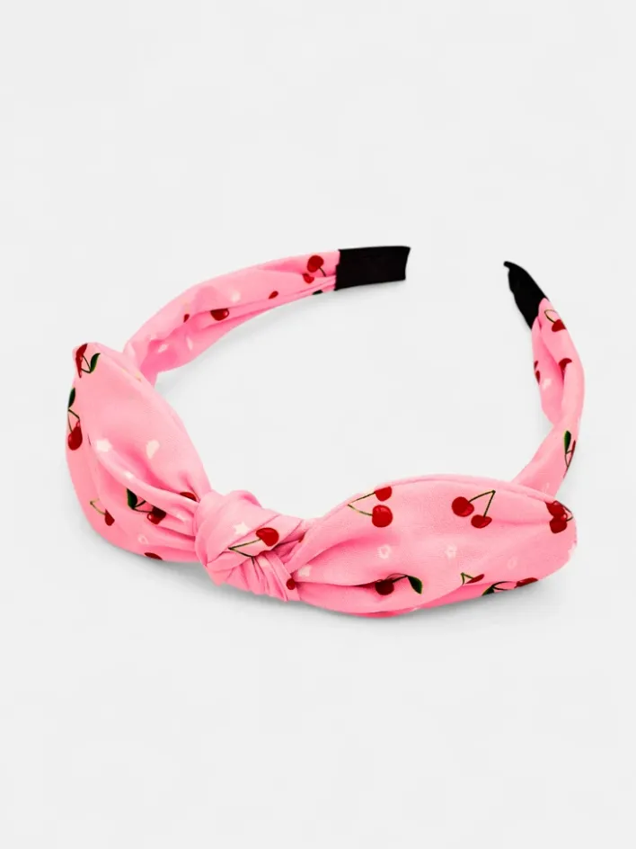 Akcesoria Do Włosów^Royalfashion Dziecięca opaska do włosów z kokardką z printem w wisienki różowy