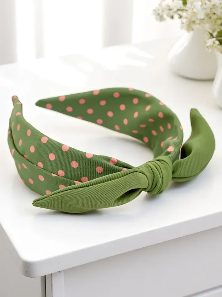 - Opaska do włosów z kokardką w kropki to uroczy i kobiecy dodatek, który doda stylu każdej fryzurze. Elastyczna i wygodna, doskonale trzyma się na głowie. Idealna na co dzień i na wyjątkowe okazje – dla fanek klasycznych wzorów.
