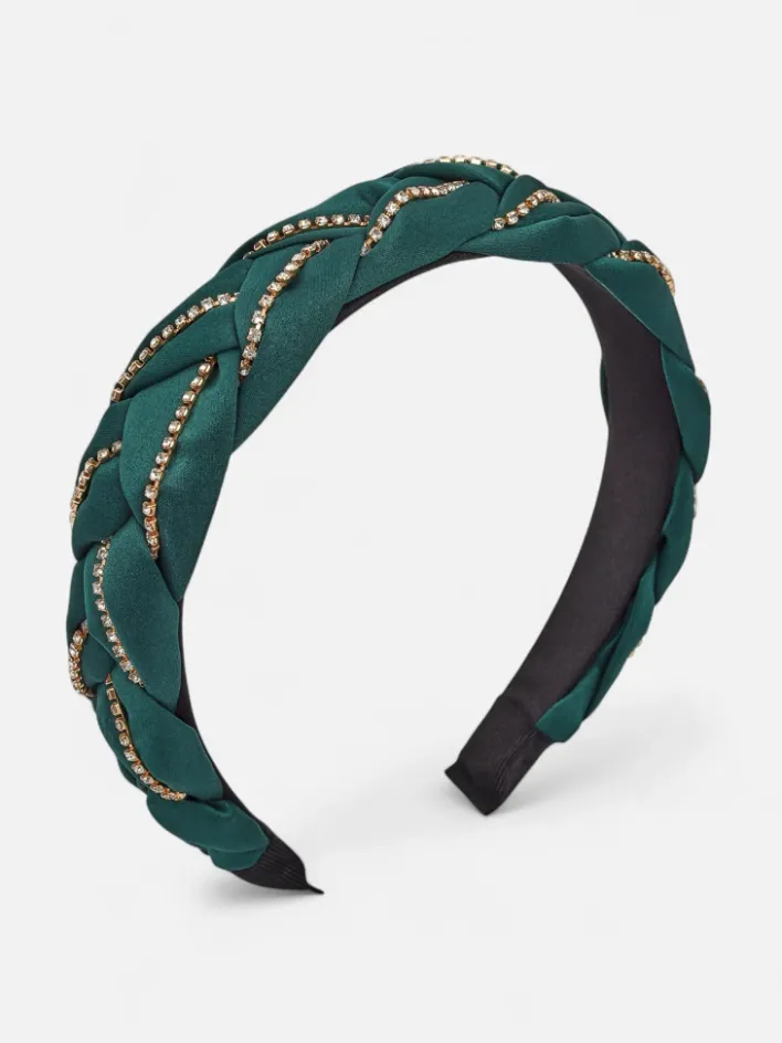 - Elegancka opaska do włosów z pleceniem w formie warkocza, subtelnie zdobiona lśniącymi cyrkoniami. Idealna na wyjątkowe okazje – dodaje blasku i klasy każdej fryzurze, a jednocześnie jest wygodna i dobrze trzyma się na głowie.