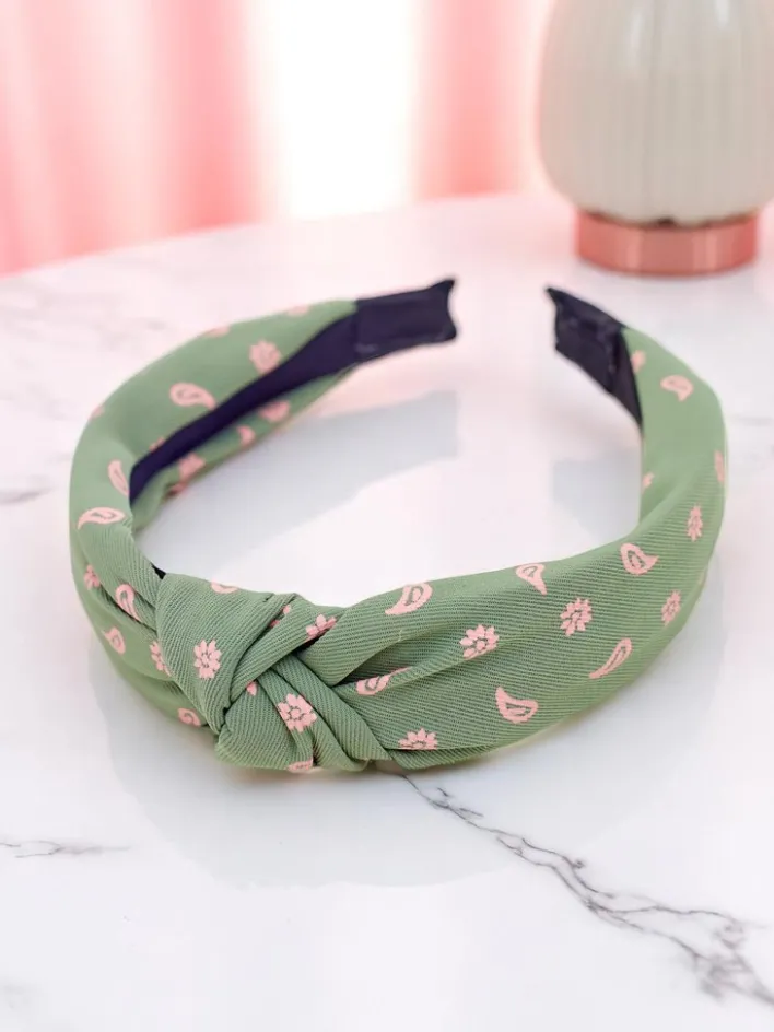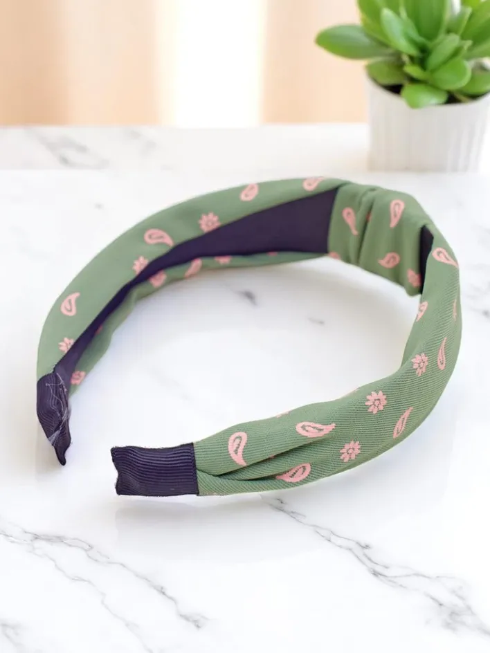 Akcesoria Do Włosów^Royalfashion Opaska do włosów z pleceniem we wzorki Grafity Boom zielony