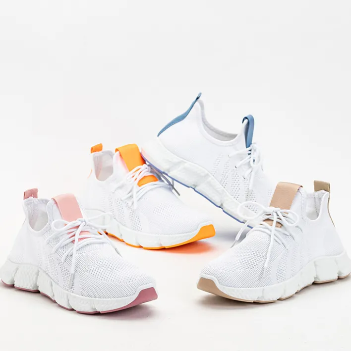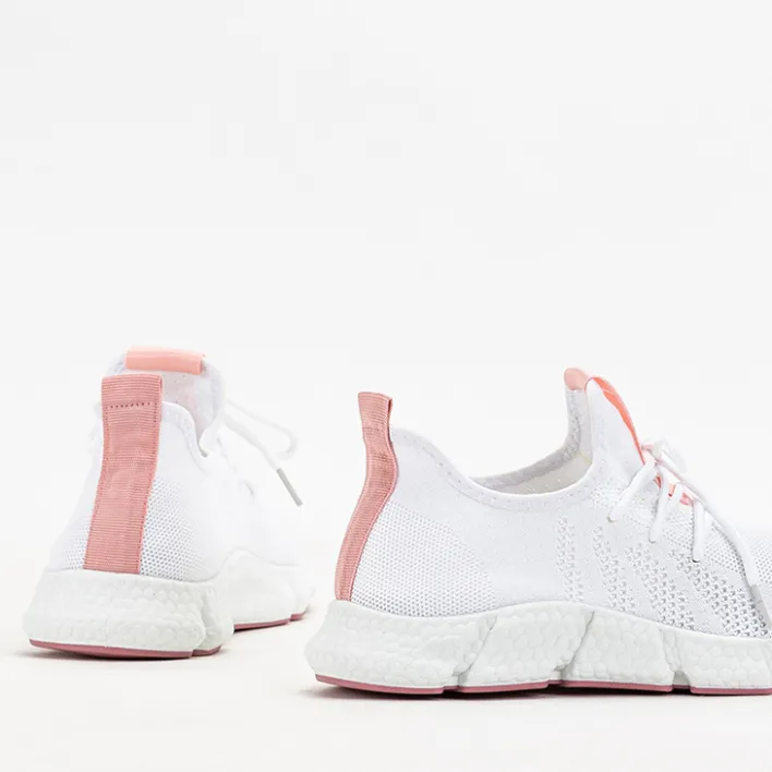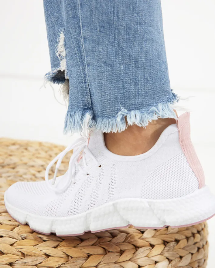 - Sportowe buty damskie na płaskiej podeszwie. Cholewka sznurowana, wykonana z tkaniny. Solidnie wykonane i bardzo wygodne dzięki miękkiej, gumowej podeszwie.