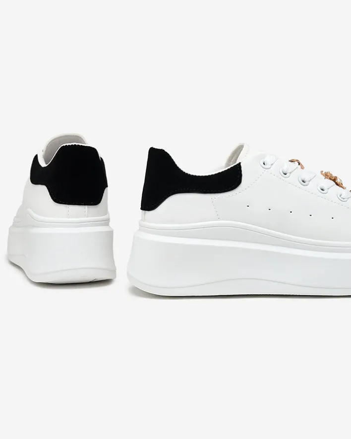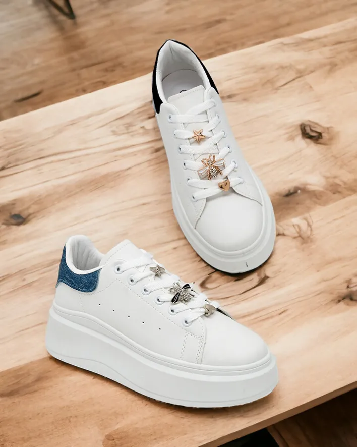- Sneakersy damskie na płaskiej podeszwie – perfekcyjne połączenie stylu i komfortu. Obuwie wykonane ze skóry ekologicznej. Model sznurowany, posiada tkaninową wkładkę i ozdoby z cyrkoniami. Idealne dla aktywnych osób!