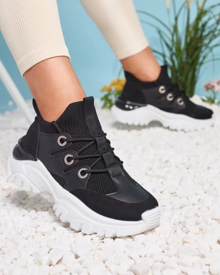 - Modne sportowe sneakersy damskie, wykonane z połączenia skóry ekologicznej, tkaniny i eko nubuku. Model sznurowany, wkładka tkaninowa. Doskonałe dopełnienie każdego sportowego outfitu!