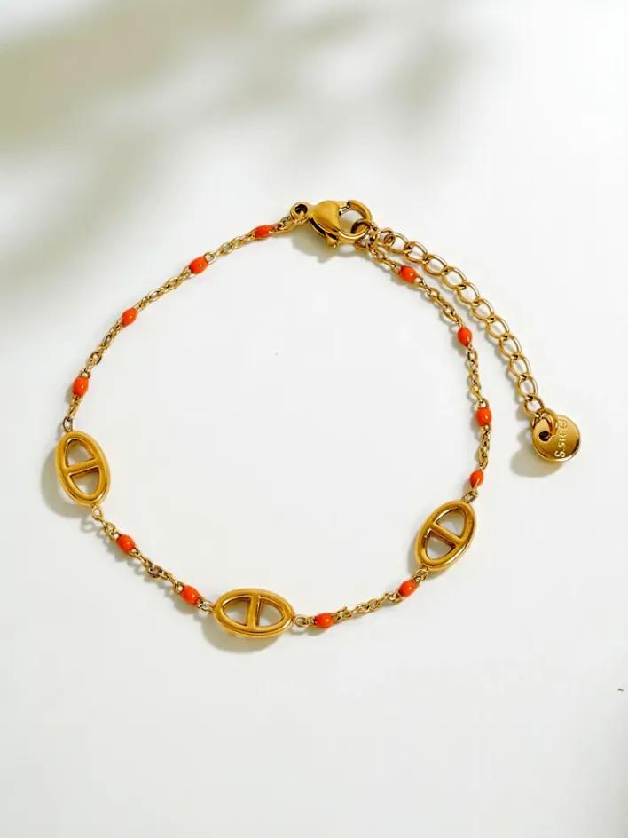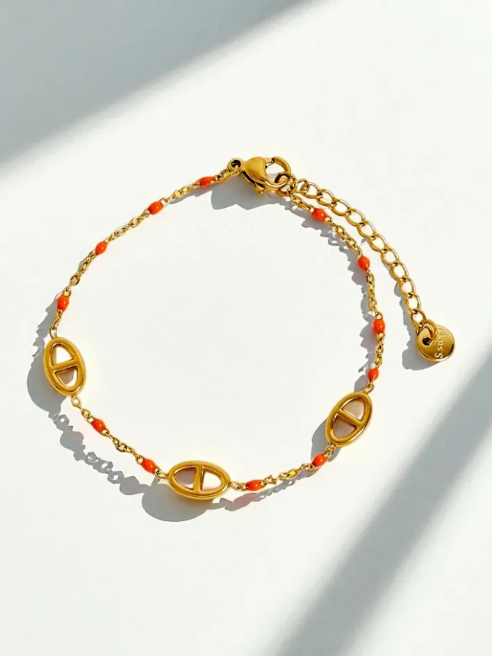 - Bransoletka pozłacana Aurelia Perseus z czerwonymi akcentami – modna biżuteria na każdą okazję.