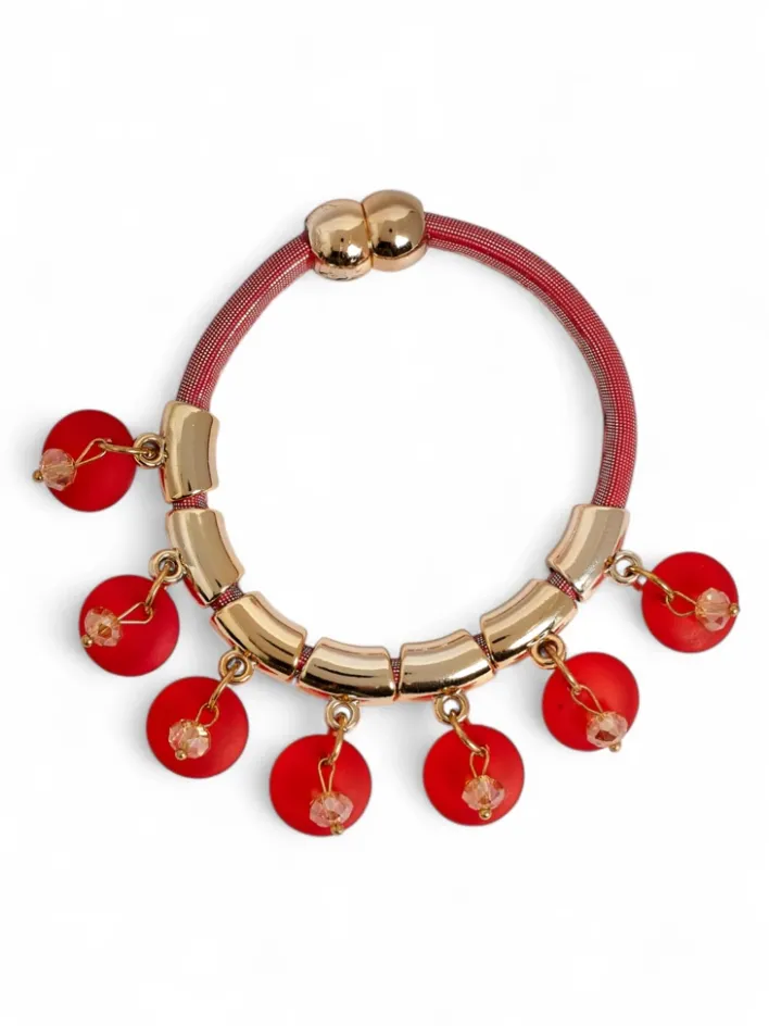 - Kobieca bransoletka z koralikami i subtelnym brokatowym akcentem. Lśni przy każdym ruchu, dodając blasku codziennym i wieczorowym stylizacjom. Lekka, wygodna i pełna uroku.