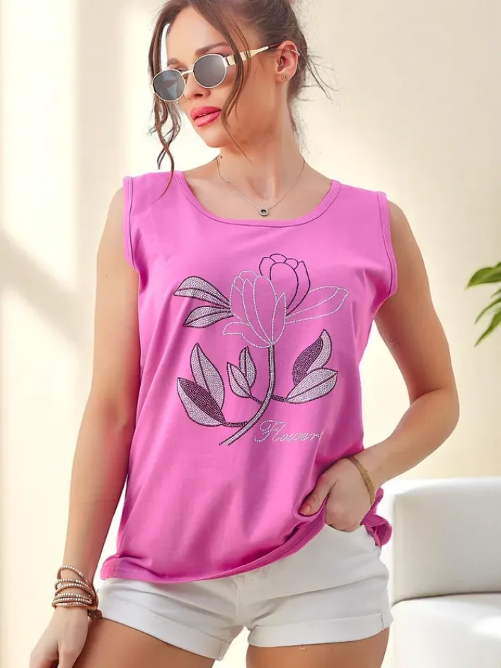 Bluzki / Koszule / Koszulki^Royalfashion Bawełniana bluzka damska na ramiączkach z cyrkoniami FLOWERS fioletowy