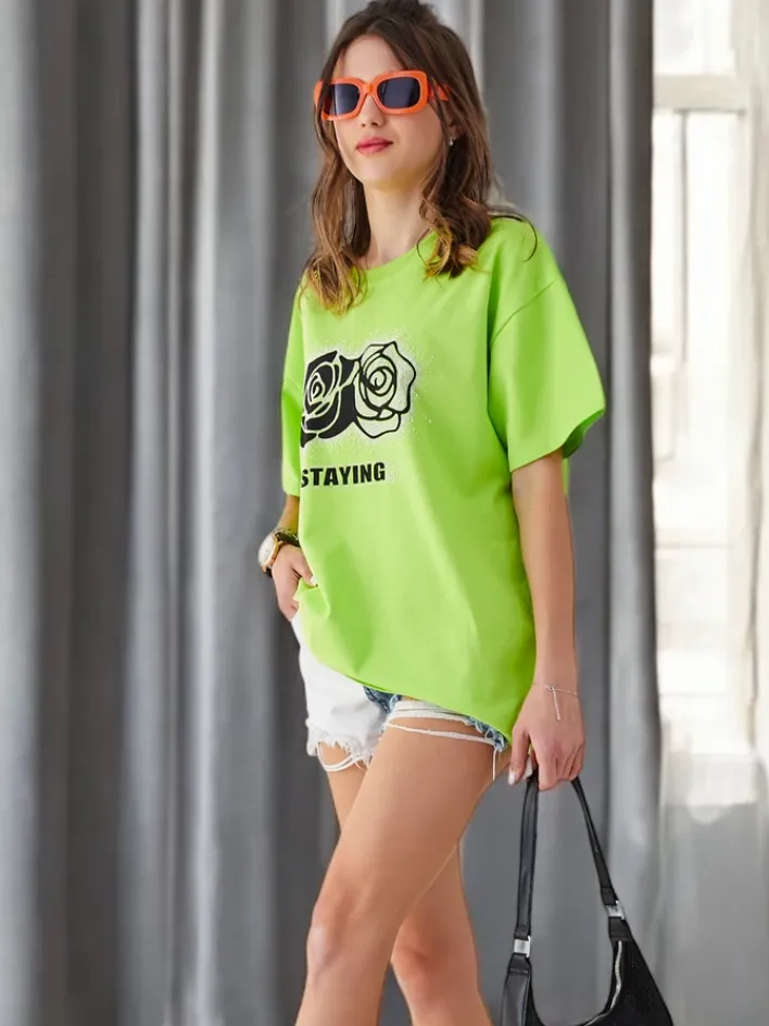 - Bawełniany damski t-shirt to lekka i wygodna propozycja na każdy dzień. Zainspirowany cyrkoniami, idealny do casualowych stylizacji. Miękka tkanina zapewnia komfort, a minimalistyczny design sprawia, że pasuje do różnych outfitów.