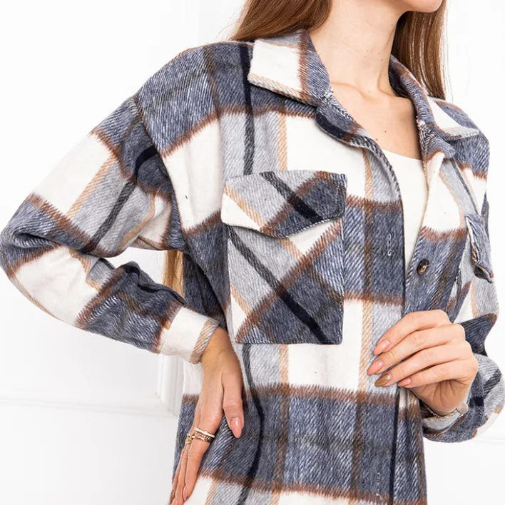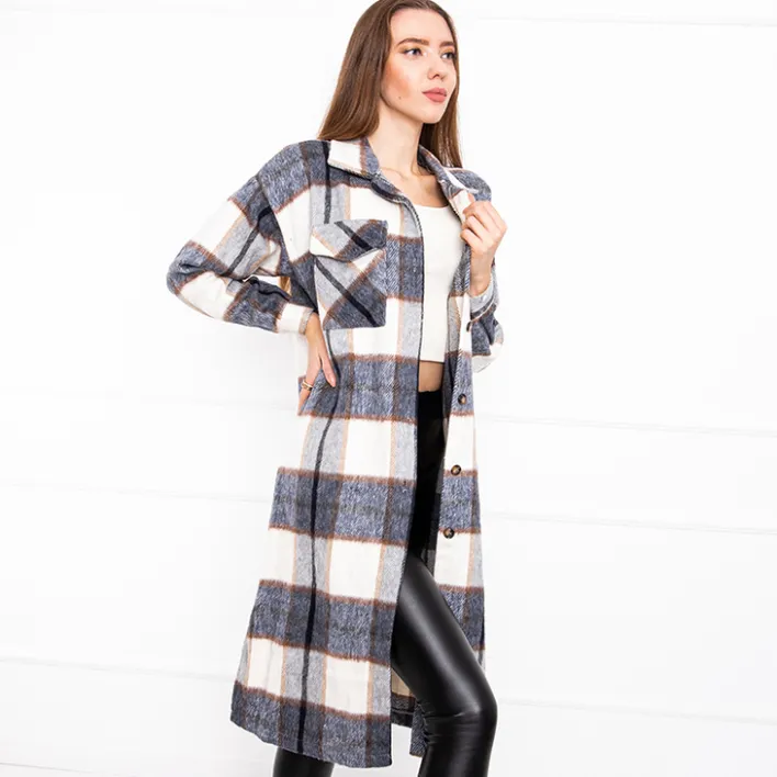 - Długa koszula damska o luźnym kroju w kolorową kratę. Przyjemna w dotyku i wygodna. Model posiada dwie kieszenie. Super wybór na co dzień!