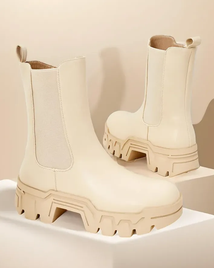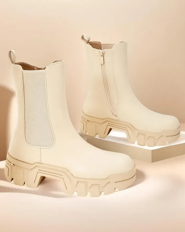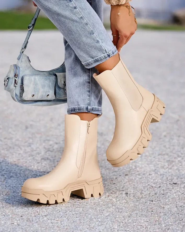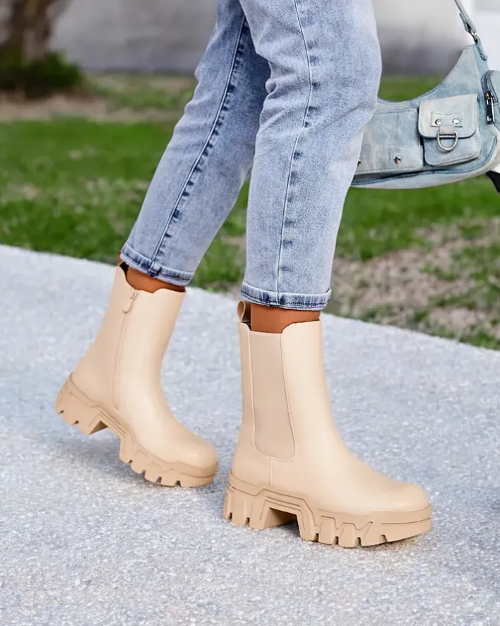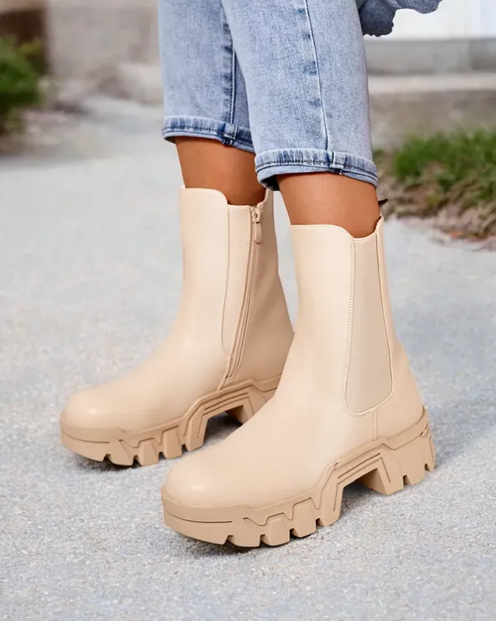 - Wysokie damskie botki wykonane ze skóry ekologicznej. Model zapinany na zamek, w środku delikatne ocieplenie, podeszwa jest gumowa. Dodatkowo elastyczna wstawka z boku. Świetne na jesień!