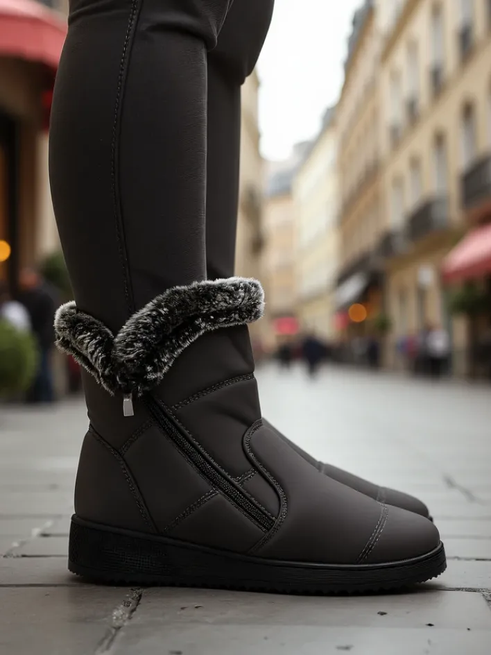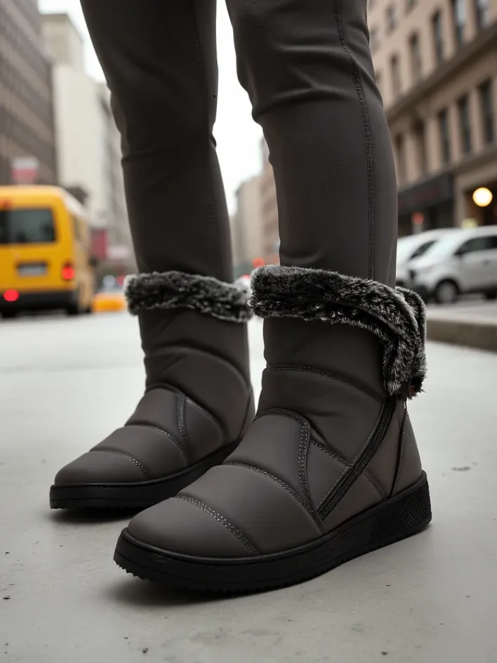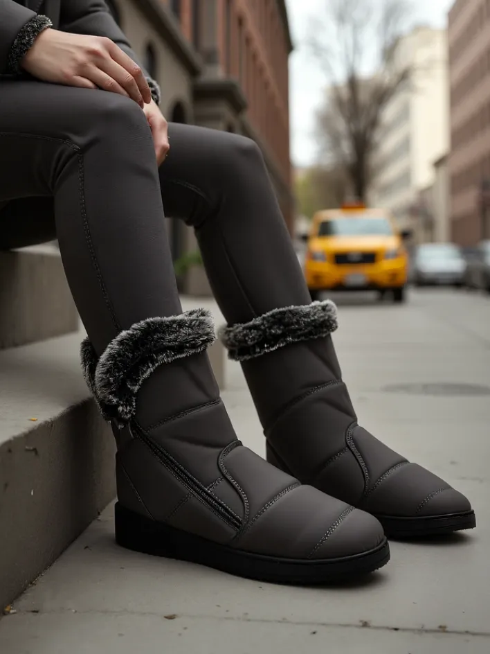 - Świetne damskie zimowe buty typu śniegowce na płaskim obcasie. Cholewka wykonana jest z tkaniny, środek ocieplony futerkiem. Model zapinany na suwak. Idealna baza na zimę!